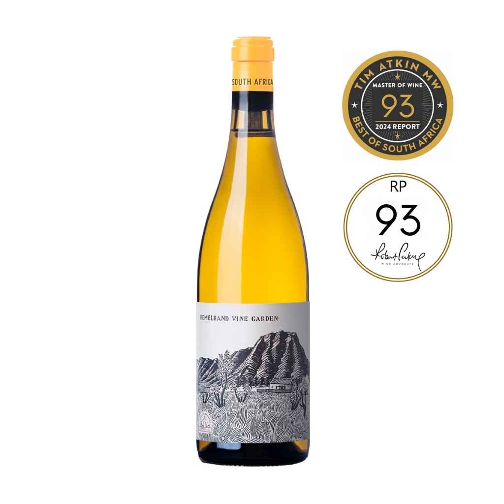 Alheit Vineyards Hemelrand Vine Garden 2023 is a one-of-a-kind South Africa estate white field blend - Chardonnay, Roussanne, Chenin Blanc, Verdelho and Muscat from a cold, windswept Hemel & Aarde Ridge vineyard at 360m, planted on gravelly clay and sandstone.