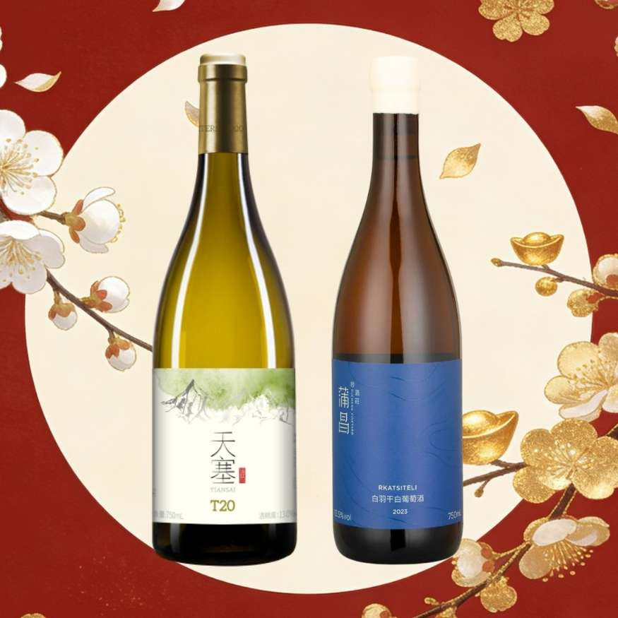 此套裝呈獻兩種截然不同的新疆高海拔沙漠風土演繹:天塞現代風格Chardonnay的成熟熱帶果香,配搭蒲昌罕見格魯吉亞品種Rkatsiteli的芳香質感。無論配搭忌廉海鮮或辛辣賀年菜式,此禮盒兼具多元配搭性與探索樂趣。